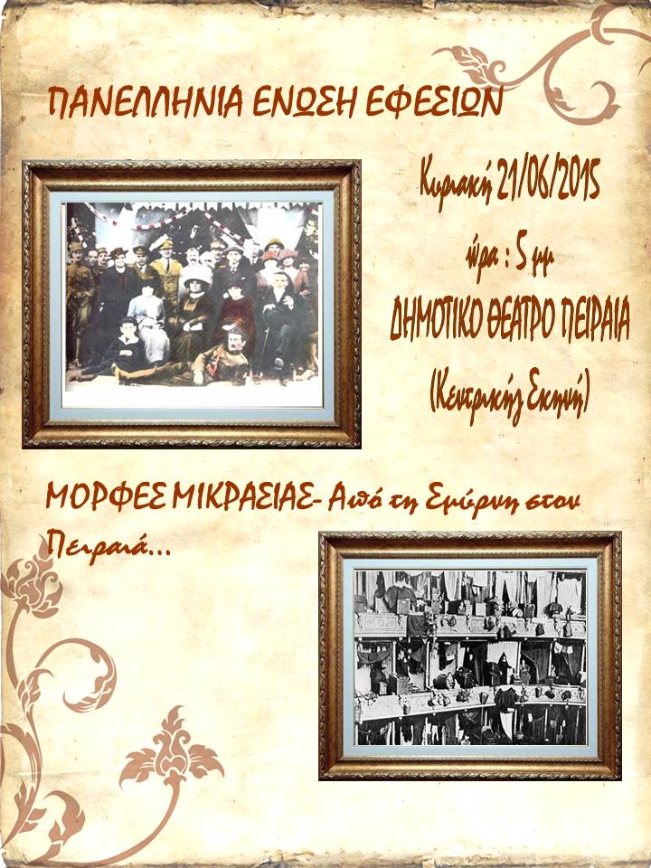 Μετά από 22 χρόνια παραστάσεων το χορευτικό της Πανελλήνιας Ενωσης Εφεσίων,έχει χορέψει …τον Γάμο, την Μουσική, τις Φορεσιές, την Ελλάδα, τις στιγμές Της, τα λιμάνια Της ,το τραπέζι Της… Το έφεραν οι καιροί όμως να χορέψουμε και το βάσανο της ξενιτιάς και προσφυγιάς.